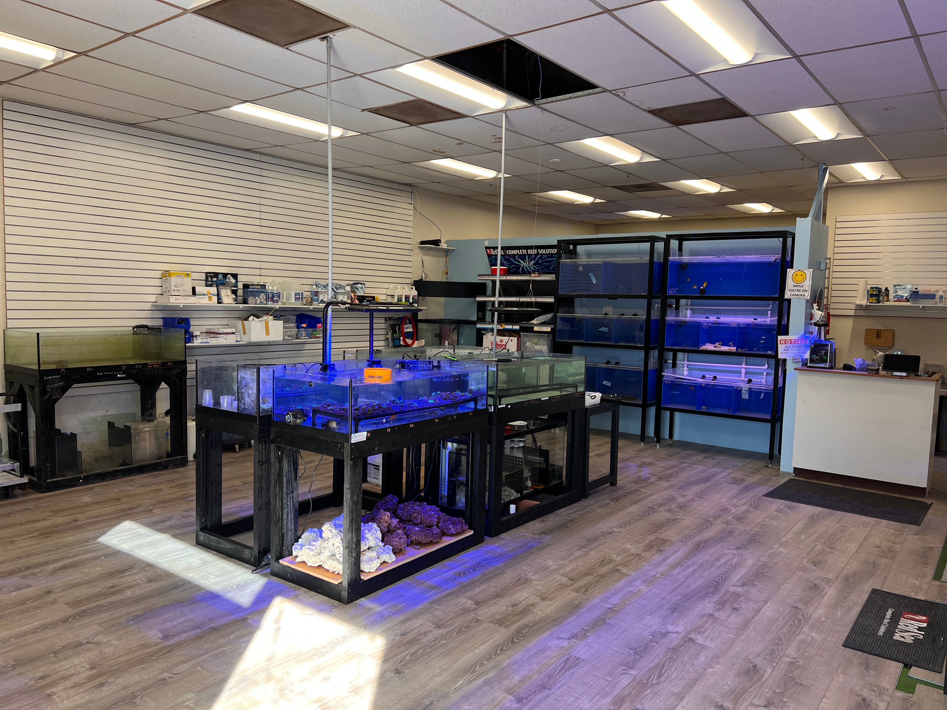 We currently DO NOT ship live stock so when you purchase any livestock from the store website, we will hold it for your for a period of 1 week unless you instruct us otherwise for pick up in the store. Most of our live stock is published on the site. However, as I mentioned we are a small team trying to get the retail operation up and running so there might be delay in publishing some to the animals on the site. This is particularly true for most of our corals. From time to time we will start posting some of our WYSIWYG show pieces on the site but typically there is a lot more in store. We highly recommend you come visit us. We would love to know you better as well. Also please do not forget to subscribe to our newsletter. We will post our current and upcoming promotions, current stock list as well as exciting upgrades we are making at the store.